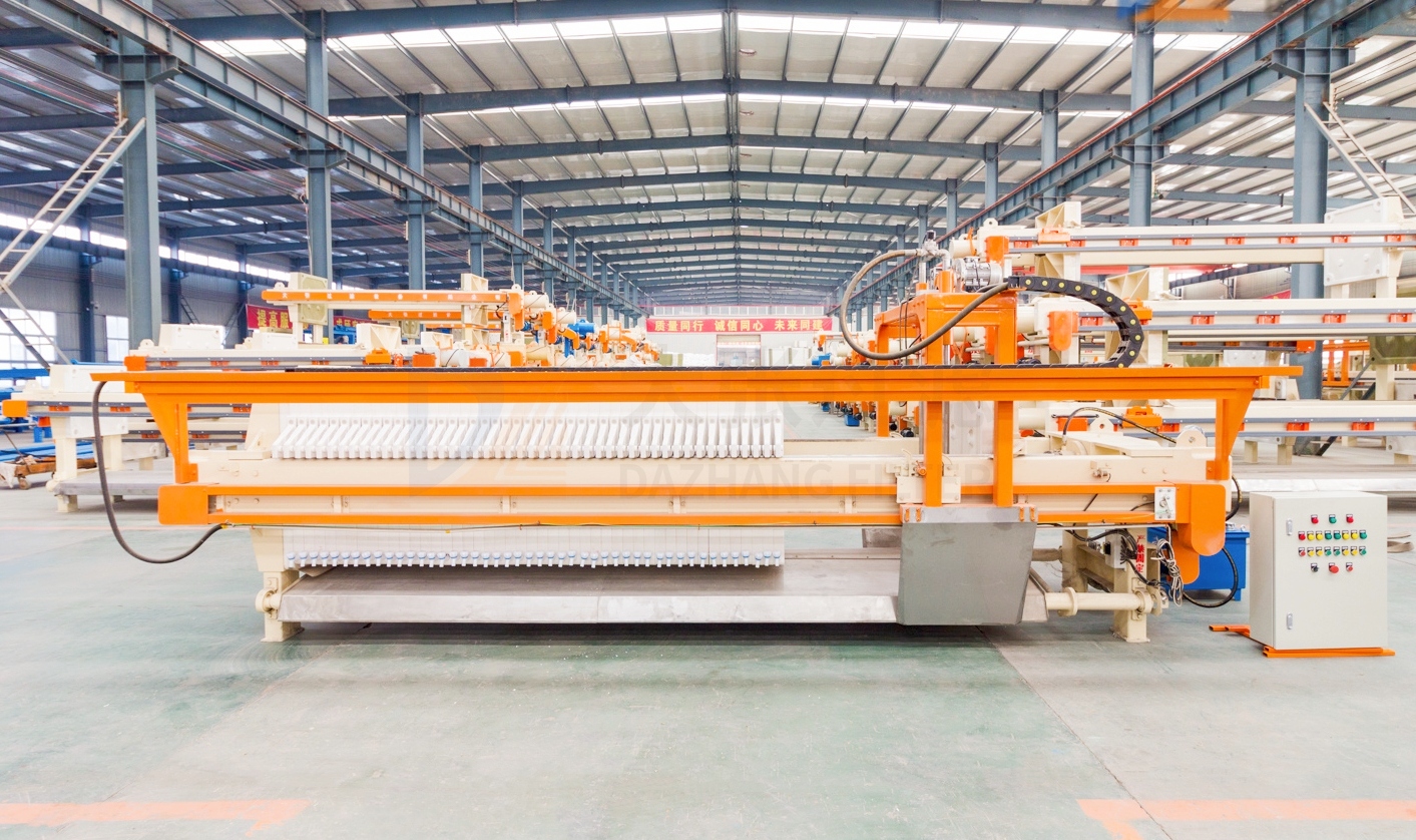 自動(dòng)拉板廂式壓濾機(jī),可以采用微電腦控制器、PLC、觸摸屏控制能對(duì)壓濾機(jī)進(jìn)行各項(xiàng)操作(如濾板壓緊、集液板合并與開啟、松開濾板、拉開濾板,水沖洗等),并留有遠(yuǎn)程控制接口,能遠(yuǎn)程自動(dòng)操作控制。