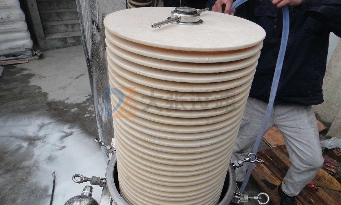 懸浮液用料泵送入紙板板框過濾器每個密閉的濾室,在壓力作用下,濾液透過濾層及濾布、經(jīng)濾布出液口排出,濾渣則留在濾框內,從而達到固液分離的目的。硅藻土過濾器濾框和濾板之間本身靠紙板或濾材密封,是一種過濾量比較大,過濾面積在2m2以上的不銹鋼板框精密過濾機(又稱不銹鋼紙板濾機),下面配置了放置紙板固定橫桿,安裝放置濾材容易方便,用精密除菌紙板過濾各種保健酒、葡萄酒,可達除菌效果。
